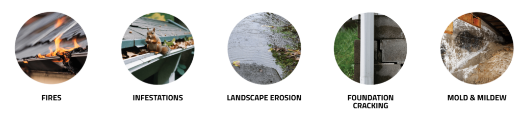 Pine and fir needles, leaves, and roof grit regularly accumulate in unprotected gutters throughout the Pacific Northwest. When gutters clog, water can overflow during storms and cause damage to fascia boards, siding, landscaping and even the foundation of your house.