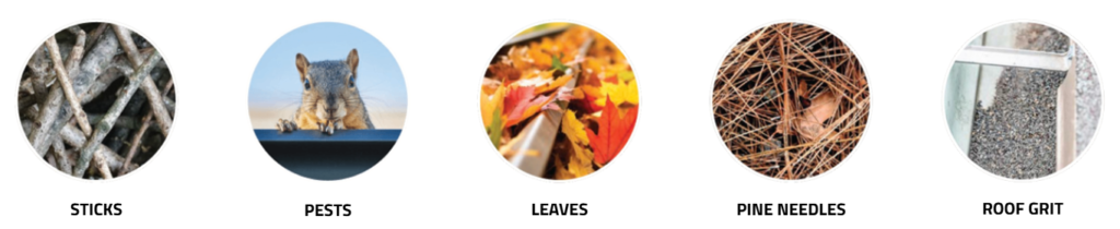 • Blocks pine and fir needles, leaves, and small debris, even roof grit